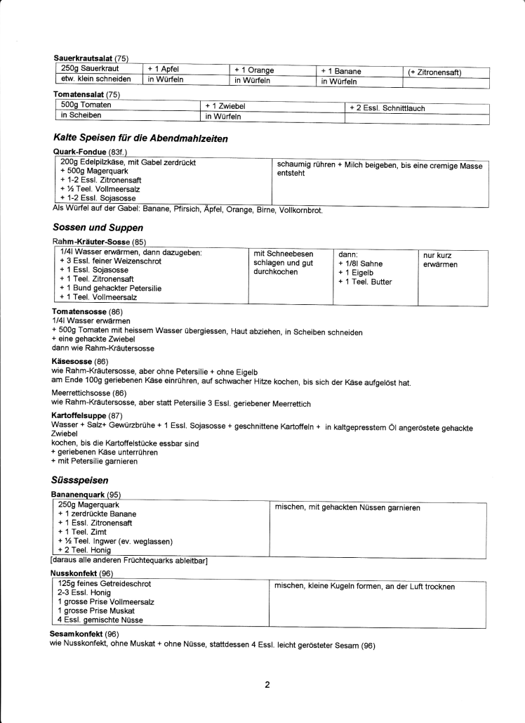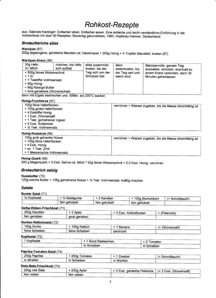 aus: Frau Gabriele Kieninger: Einfacher leben, Einfacher essen. Eine einfache und leicht verständliche Einführung in die Vollwertkost mit über 50 Rezepten; Bioverlag gesundleben, Hopferau-Heimen 1983, Deutschland