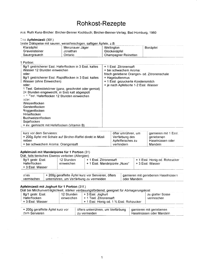 Rohkost Kunz-Bircher 02: Müesli und Gemüse