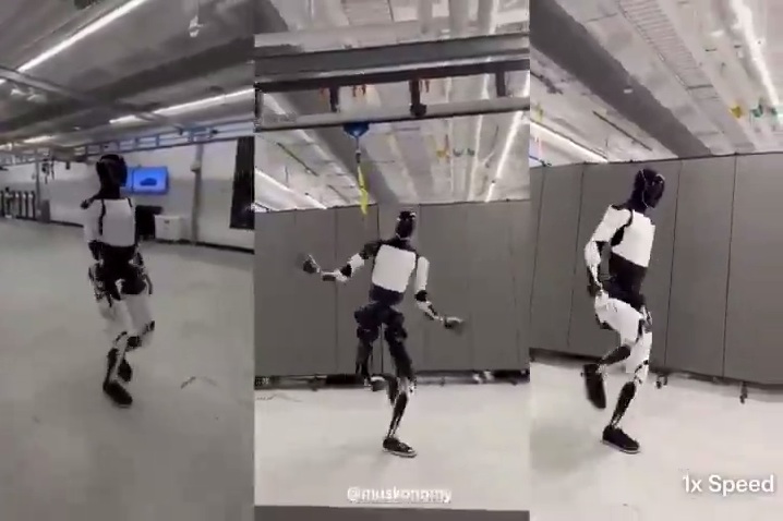 Musk mit Roboter "Optimus" am 14.6.2025: Er tanzt und