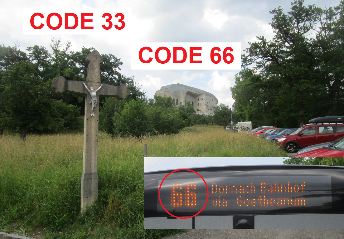 2.7.2024: WICHTIGES FOTO: Code 33 und Code 66: Fantasie-Jesus der kr. Kirche=Code 33 (Hochgrad-Freimaurerei) - und der Fantasie-Steiner-Jesus im kr. Goetheanum=Code 66 (Teufel vom Roten Schild) [3]