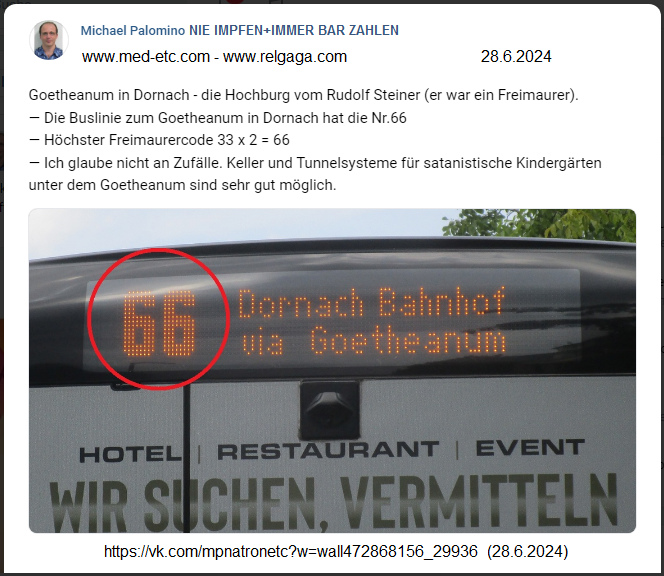 Verdacht 28.6.2024: Kriminelles Goetheanum ist satanistisch vom Teufel mit satanistischen Ritualen: Buslinie mit Code 66