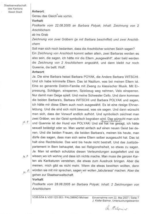 [von der Basler Staatsanwaltschaft] zu den Taten befragt