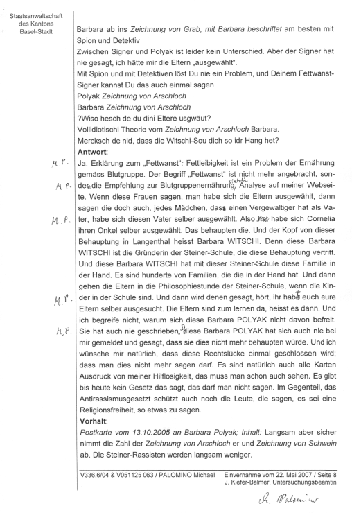 Mai 2007, Einvernahme durch die Untersuchungsbeamtin J.