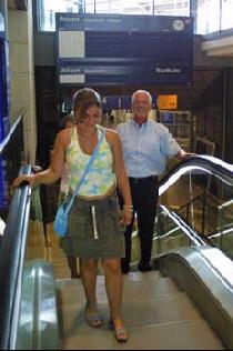 Bahnhöfen = Katastrophe Rolltreppen sind eine Katastrophe und nicht gangbar -- für alle Kinderwagen -- für Behinderte -- für Hunde -- für Leute mit Gepäck -- sind gefährlich für Schülergruppen (Unfallgefahr in der Gruppe auf Klassenfahrten / Schulreisen). Ausserdem kosten die Rolltreppen viel, und sie verursachen überflüssigen Stromverbrauch und Reparaturkosten. Wenn Rolltreppen stillstehen, sind die Stufen so hoch, dass man sie kaum begehen kann. Da Bahnhöfe Fussgängerzonen mit einem sehr hohen Fussgängerverkehrsaufkommen sind, und da die Menschen dort z.T. unter Zeitdruck stehen, um Anschlüsse nicht zu verpassen, sind Rolltreppen in Bahnhöfen die ungünstigste Lösung. Rolltreppen sind allenfalls in Warenhäusern geeignet, wo der Kunde keinen Zeitdruck hat, wo die Leute ohne Gepäck und ohne Hund hineingehen, und wo genügend Aufzüge / Lifts für Kinderwagen / Behinderte zur Verfügung stehen. |
