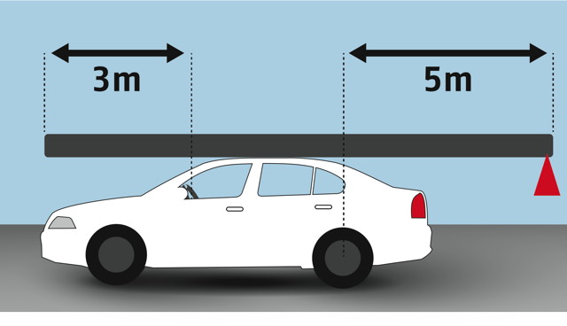 3m: Restbreite von Fahrbahnen beim Anhalten, max. Überhang von Ladungen vorne