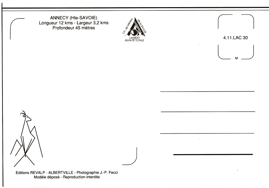 Lac d'Annecy, Ansichtskarte Übersicht mit Annecy,