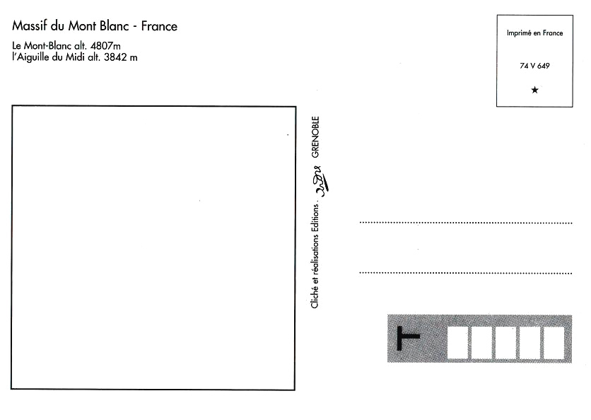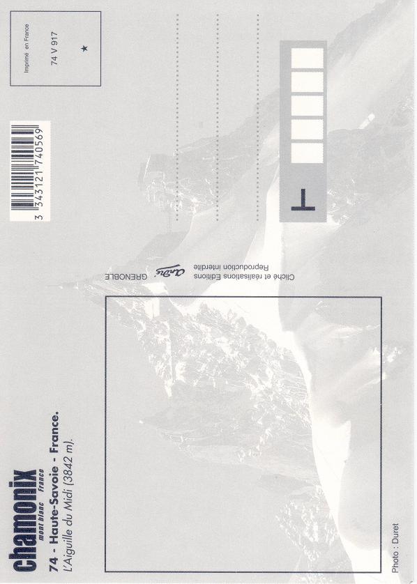 Chamonix Aiguille du Midi, Rückseite der Postkarte