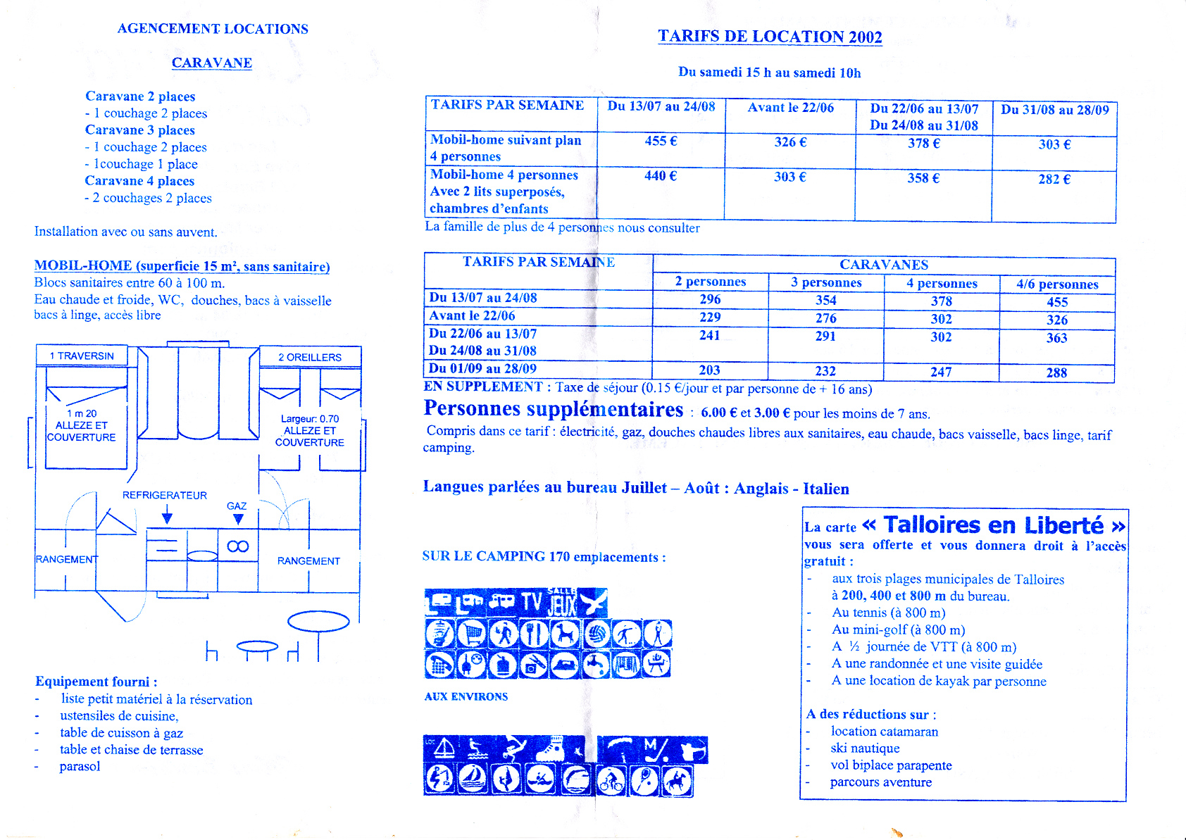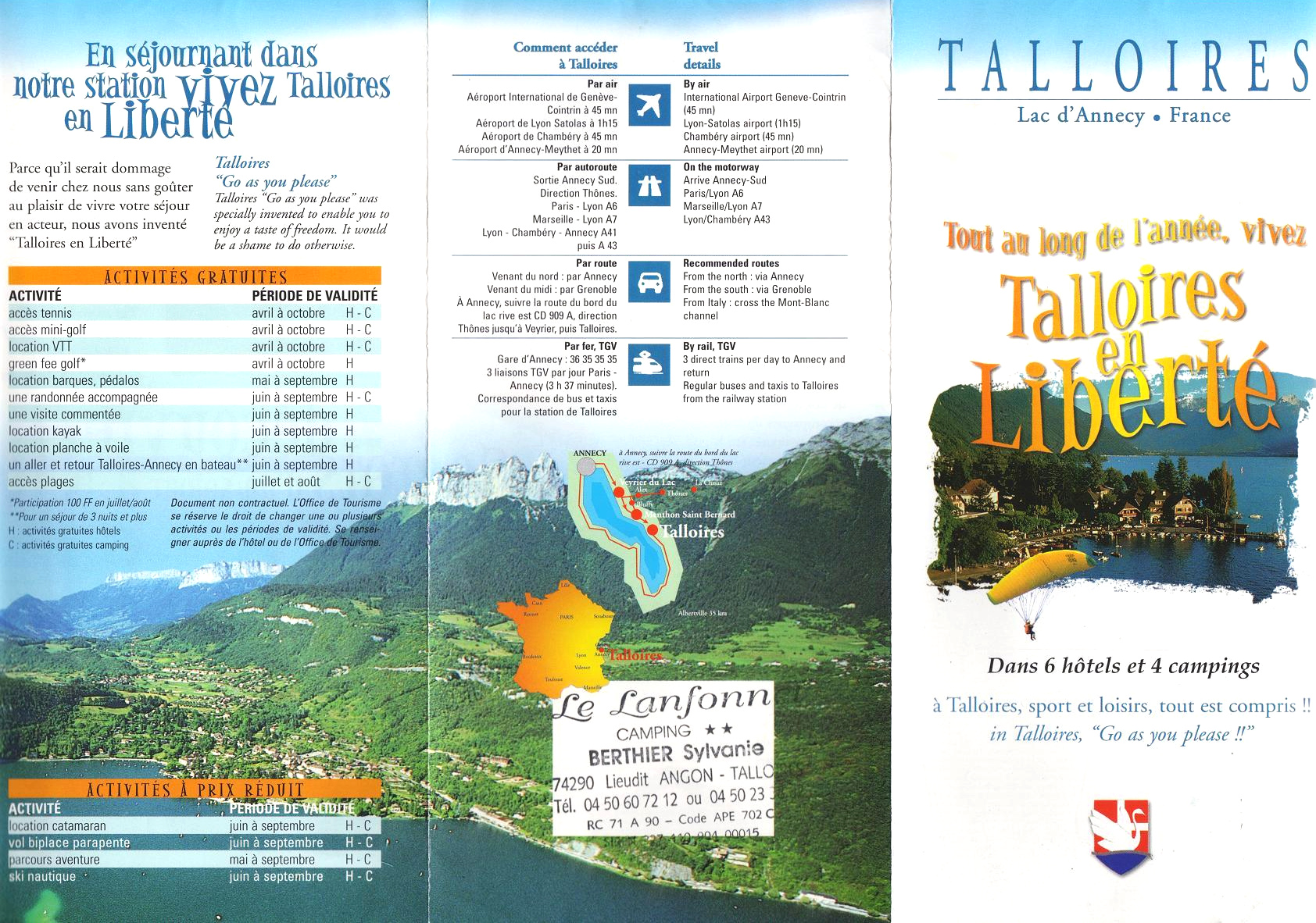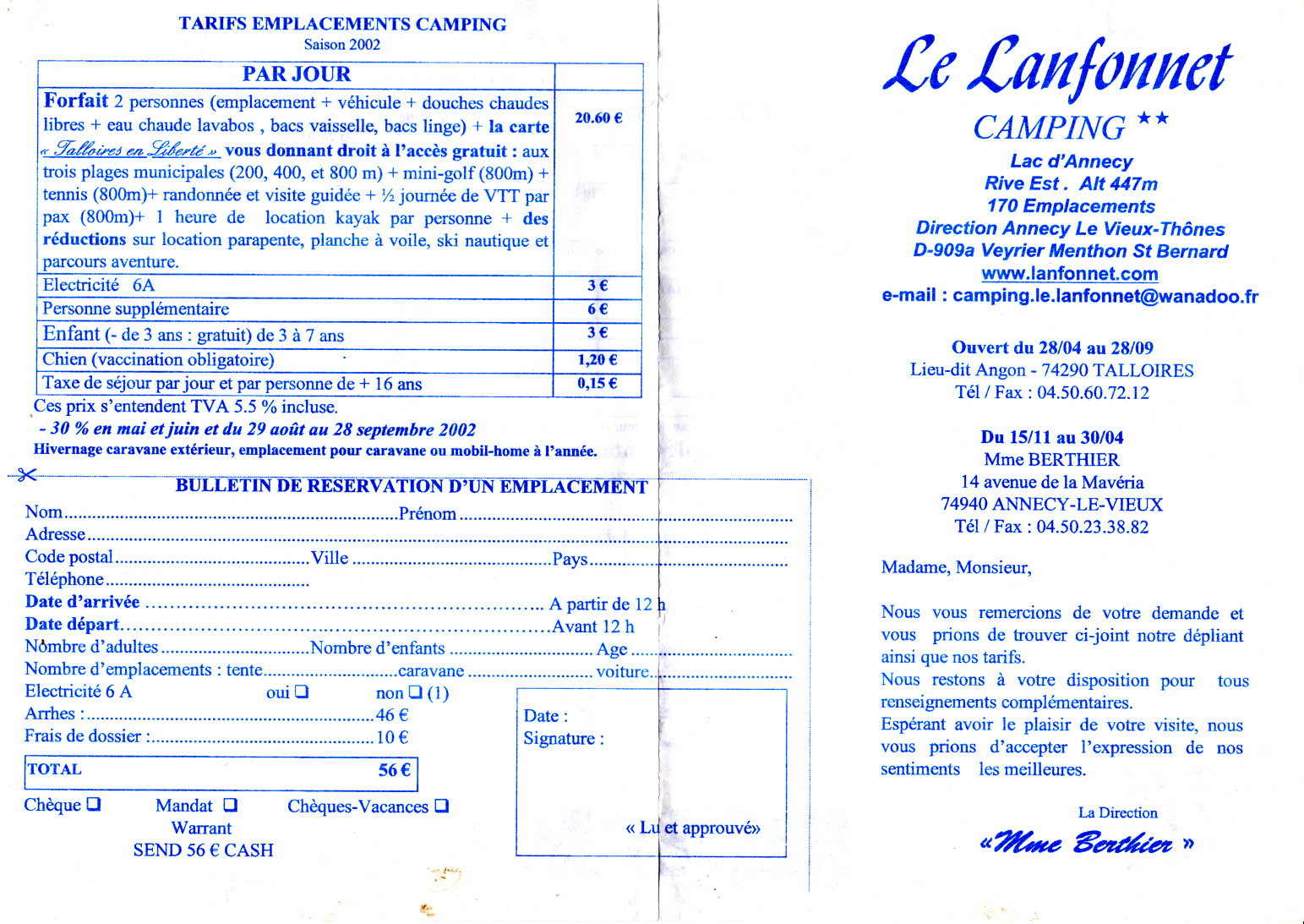 Talloires, Camping Le Lanfonnet, Preisliste (2002)