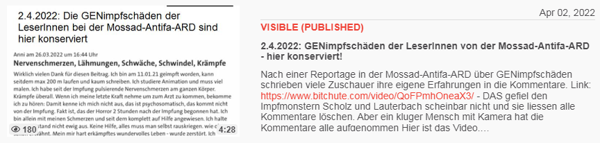 Video vom 2.4.2022: 2.4.2022: GENimpfschäden der LeserInnen von der Mossad-Antifa-ARD - hier konserviert!