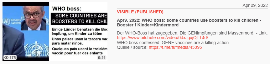 Video vom 9.4.2022: Apr9, 2022: WHO boss: some countries use boosters to kill children - Booster f Kinder=Kindermord