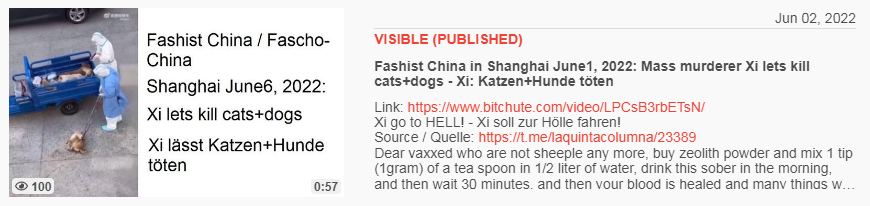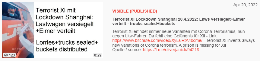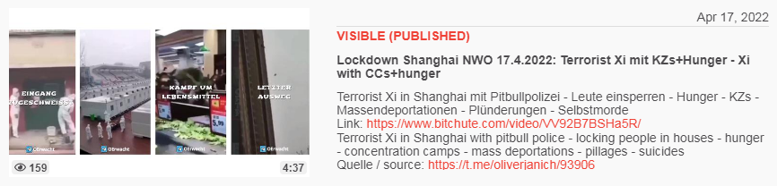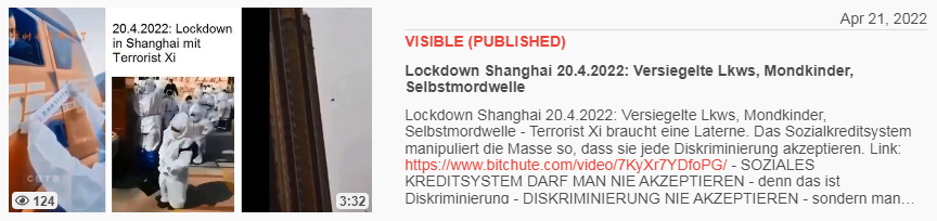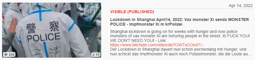 Video vom 17.4.2022: KPChina 17.4.2022: Totaler Terror beim Lockdown Shanghai - total terrorism Xi=terrorist