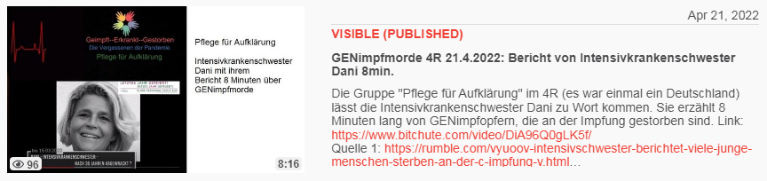 Video vom 21.4.2022: GENimpfmorde 4R 21.4.2022: Bericht von Intensivkrankenschwester Dani 8min.