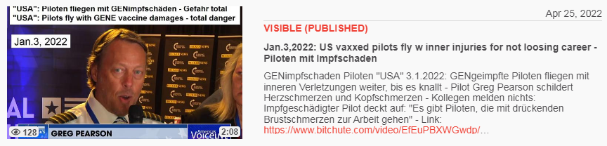 Video vom 25.4.2022: Jan.3,2022: US vaxxed pilots fly w inner injuries for not loosing career - Piloten mit Impfschaden
