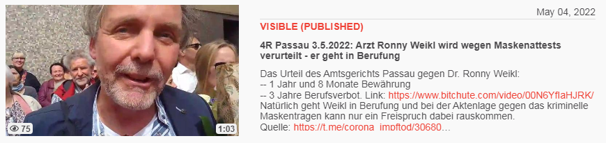 Video vom 4.5.2022: 4R Passau 3.5.2022: Arzt Ronny Weikl wird wegen Maskenattests verurteilt - er geht in Berufung
