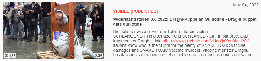 Video vom 4.5.2022: Widerstand Italien 3.5.2022: Draghi-Puppe an Guillotine - Draghi puppet gets guillotine
