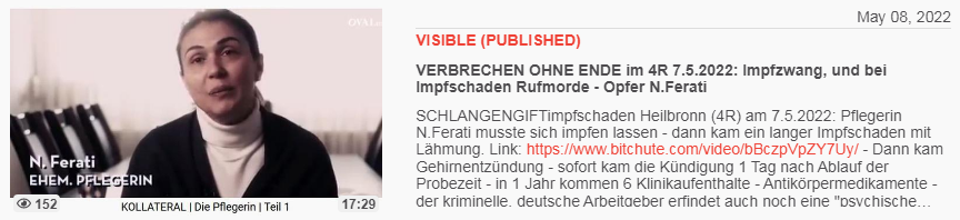 Video vom 8.5.2022: VERBRECHEN OHNE ENDE im 4R 7.5.2022: Impfzwang, und bei Impfschaden Rufmorde - Opfer N.Ferati