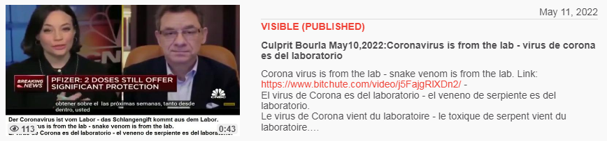 Video vom 11.5.2022: Culprit Bourla May10,2022:Coronavirus is from the lab - virus de corona es del laboratorio