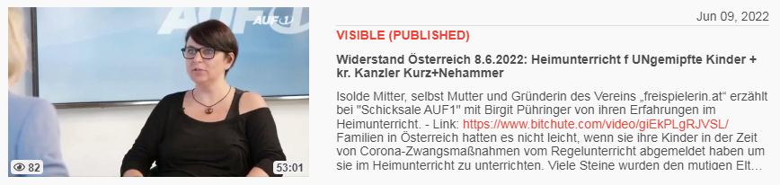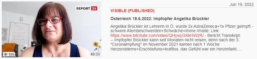 Video vom 19.6.2022: Österreich 18.6.2022: Impfopfer Angelika Brückler