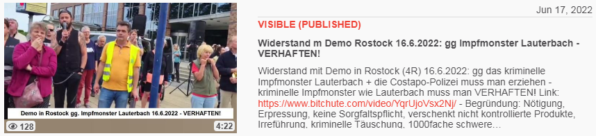 Nach einer Reportage in der Mossad-Antifa-ARD über GENimpfschäden schrieben viele Zuschauer ihre eigene Erfahrungen in die Kommentare. - DAS gefiel den Impfmonstern Scholz und Lauterbach scheinbar nicht und sie liessen alle Kommentare löschen. Aber ein kluger Mensch mit Kamera hat die Kommentare alle aufgenommen Hier ist das Video.