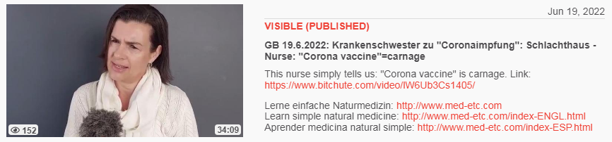 Video vom 19.6.2022: GB 19.6.2022: Krankenschwester zu "Coronaimpfung": Schlachthaus - Nurse: "Corona vaccine"=carnage