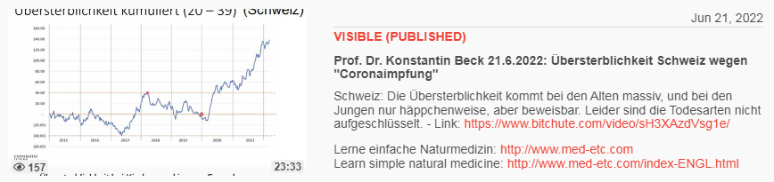 Video vom 21.6.2022: Prof. Dr. Konstantin Beck 21.6.2022: Übersterblichkeit Schweiz wegen "Coronaimpfung"
