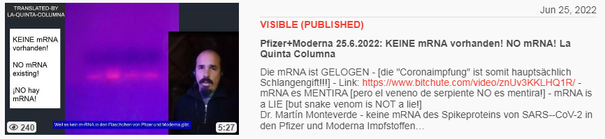 Video vom 25.6.2022: Pfizer+Moderna 25.6.2022: KEINE mRNA vorhanden! NO mRNA! La Quinta Columna
