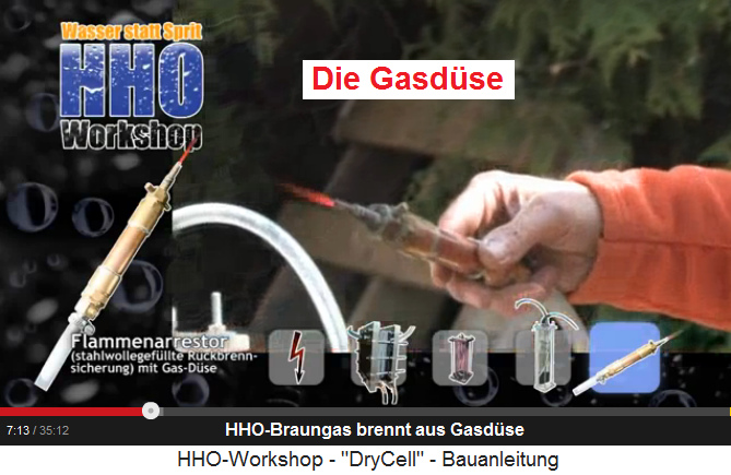 Stelle durch das HHO-Gas / Braungas / Knallgas