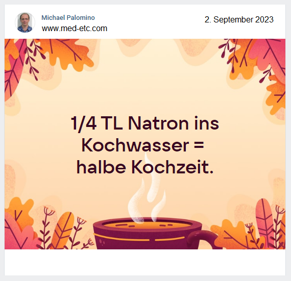 Strom sparen beim Kochen 2.9.2023: 1/4 TL Natron ins