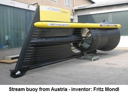 The ingenious and environmentally friendly stream buoy (inventor is Mr. Fritz Mondl, Austria).
