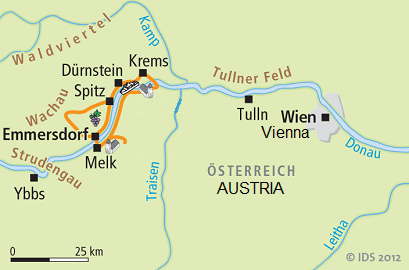 [3] Karte mit der Landschaft "Wachau" vor Wien, Österreich: http://www.velociped.de/alle-radtouren/europa/oesterreich/wachau-sternradtour.html