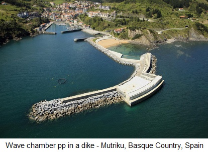 The wave chamber power plant at Mutriku in Spain since 2011: 16 turbines.