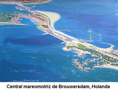 Central mareomotriz de Brouwersdam en Holanda, en el mar de Grevelingen, construida en 1971 [3]