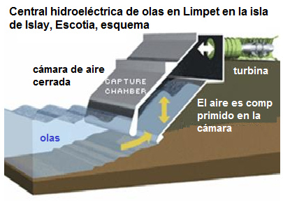 [6] Wellenkammer-Kraftwerk in Limpet auf Islay, Schottland, Schema 2: http://brageconsultores.blogspot.com/2009/04/planta-de-energia-maritima-en-motrico.html