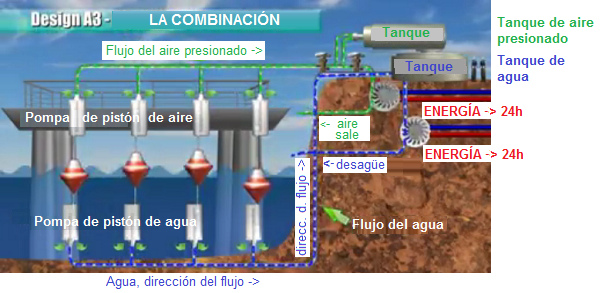 Wellen-Druckluftkraftwerk kombiniert: